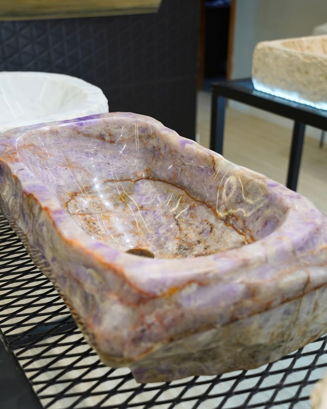 Transforme seu banheiro ou lavabo em um verdadeiro espaço de luxo com a nossa Cuba em Ametista Rosa Natural. Esta peça exclusiva é confeccionada em uma das pedras semipreciosas mais admiradas, conhecida por suas propriedades estéticas e energéticas. Com um design sofisticado e acabamento impecável, a cuba apresenta nuances de rosa e roxo, tornando cada unidade única e especial.